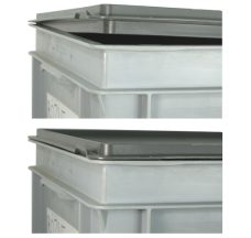 • Plastikowe pojemniki do magazynowania detali i produktów • Z uchwytami zewnętrznymi