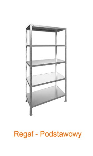 • Regał półkowy magazynowy o konstrukcji skręcanej, składający się z półek, nóg (stojaków) oraz elementów złącznych