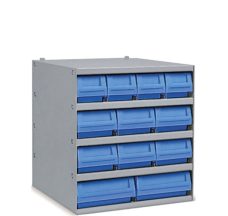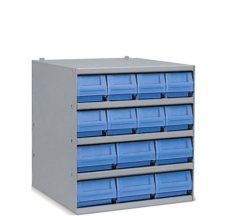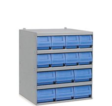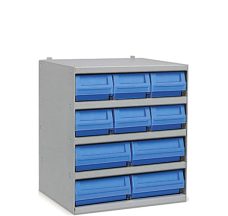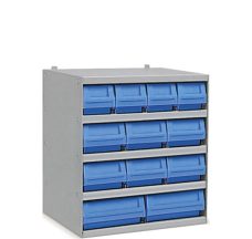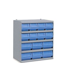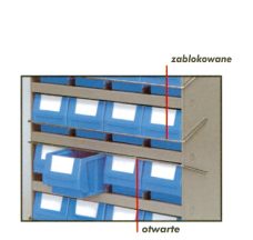 • Regały (szafki) wolnostojące wyposażone w wysuwane kuwety z przegrodami do przechowywania detali o różnych wymiarach