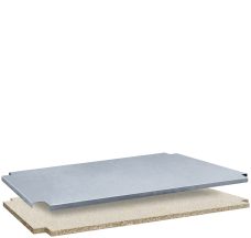 • Słupy regału z kaształtownika stalowego, półki z płyty wiórowej twardej o dużej sztywności