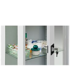 • Przeszklone szafy metalowe przeznaczone do gabinetów lekarskich, szpitali i przychodni