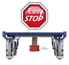 • Hamulec centralny, stanowiący standardowe wyposażenie większości wózków, znacznie skraca czas operacji transportowych. Osłona kół eleminuje najczęstszą przyczynę urazów przy obsłudze wózków